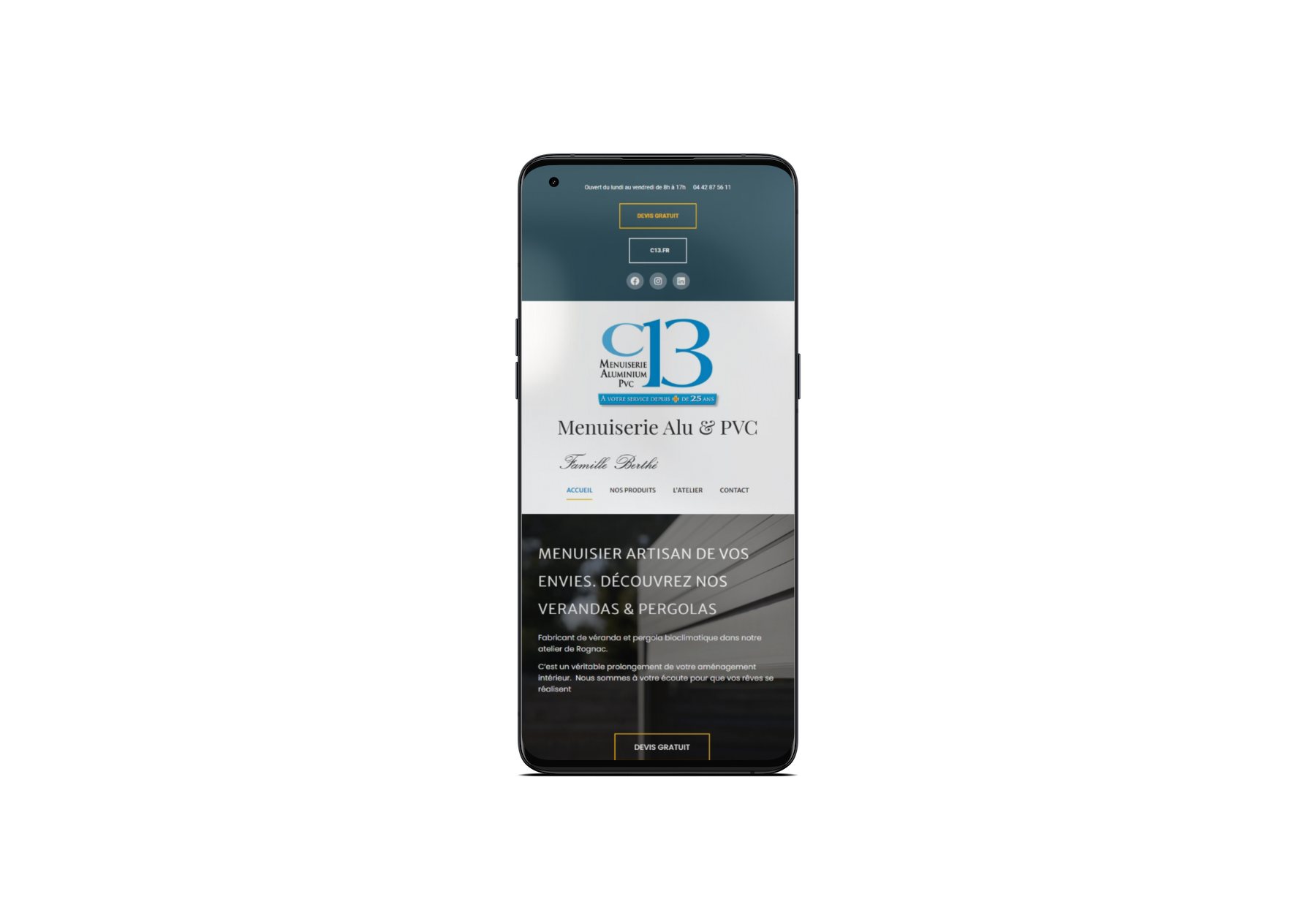 Site vitrine professionnel pour une entreprise artisanale spécialisée dans les vérandas et pergolas sur mesure.